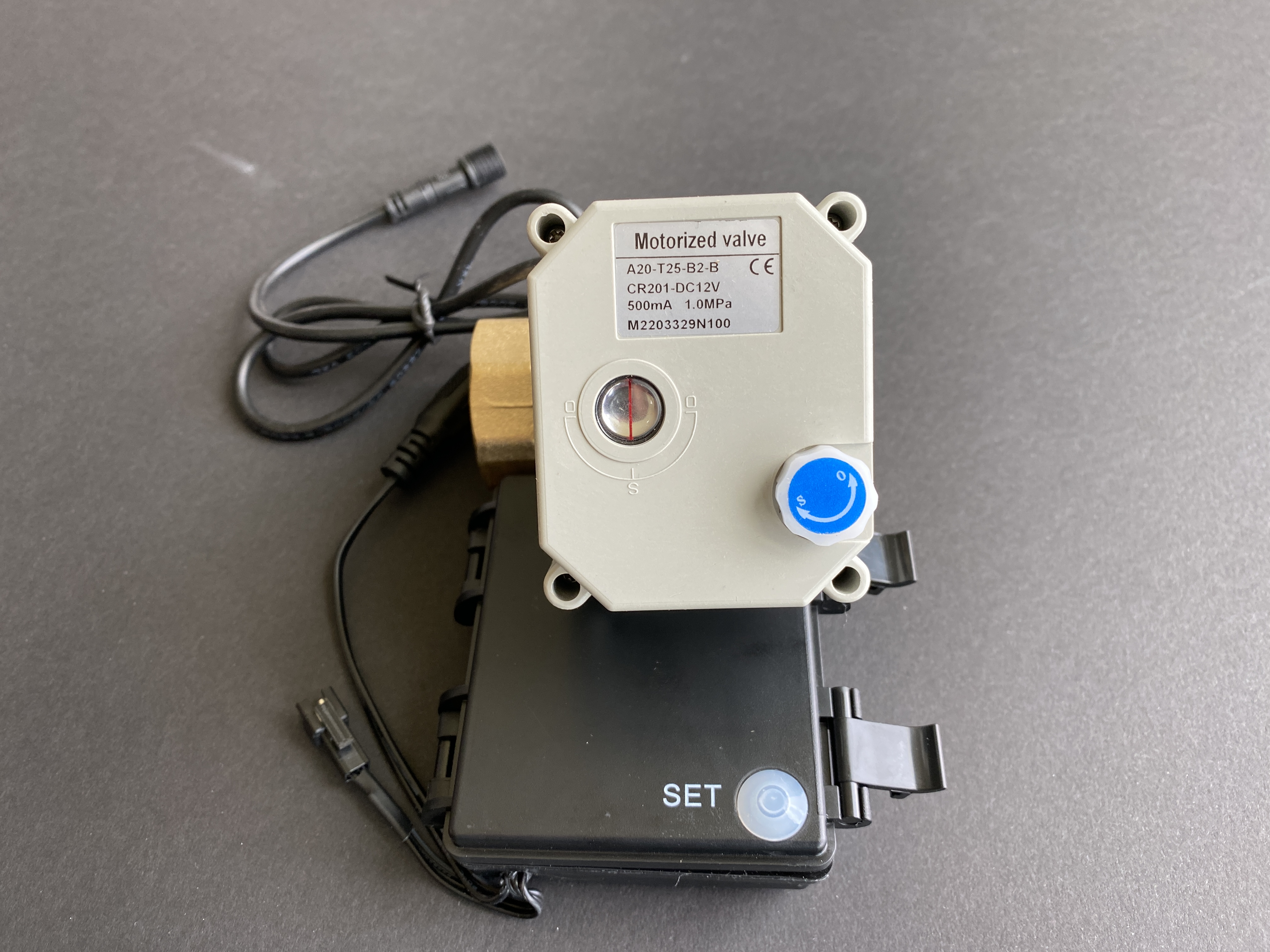 • Press the “Set” button on the controller as shown below – that toggles the valve state (you’ll hear the motor and gears whine as it moves). Press it again to turn the water off.